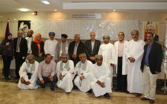 استقبلت مستشفى النجاح الوطني الجامعي يوم الأربعاء الموافق 23/10/2013 وفد من جمعية الصحافيين العمانيين ضم مجموعة من الاعلاميين والكتاب المستقلين. وكان في استقبال الوفد الدكتور هاني النابلسي، عضو مجلس أمناء المستشفى، والأستاذ رشيد الكخن، المدير المالي في الجامعة، وعدد من رؤساء أقسام المستشفى، وقد رافق الوفد عطوفة اللواء جبرين البكري، محافظ محافظة نابلس، وطاقم من مكتبه، وطاقم من الرئاسة الفلسطينية، والسيد جعفر اشتيه ممثلاً لنقابة الصحفيين في نابلس.