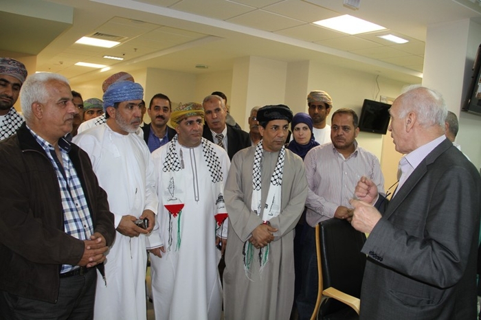 وقد زار الوفد جميع أقسام المستشفى واطلع على التجهيزات الطبية الراقية الموجودة فيه، كما عاد الوفد المرضى الموجدين في قسمي غسيل الكلى والسرطان واطمأن على صحتهم وتمنى لهم الشفاء العاجل. وقد سجل الوفد اعجابا كبيرا بمدى التطور الذي وجده في المستشفى والخدمات الطبية المميزة التي يقدمها للمواطن الفلسطيني، وقد قال أحد أفراد الوفد: "إن ما وجدته في المستشفى لم أشاهده في الكثير من مستشفيات العالم المتطور".