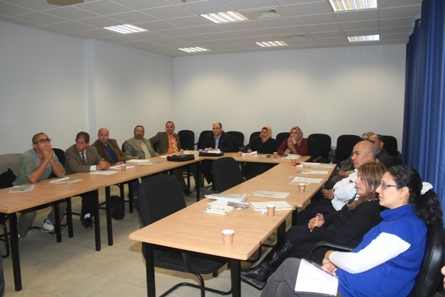 ضمن فعاليات مشروع تدريب الأطباء والتمريض على بروتوكولات منظمة الصحة العالمية الذي تديره د.سمر غزال مسمار مساعد عميد الكلية للدراسات العليا عقدت الكلية ورشة عمل تدريبية للمدربين وعددهم عشرون مدربا من وزارة الصحة الفلسطينية وجامعة النجاح الوطنية يوم الأحد 1/12/2013.