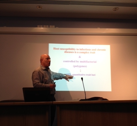 في مساعيها نحو تطوير البنية التحتية للابحاث والمختبرات البحثية والاستفادة من الخبرات الفلسطينية العالمية في كافة ارجاء الوطن، استضافت كلية الطب وعلوم الصحة يوم الثلاثاء الموافق ٢٠-١-٢٠١٥ البروفسور الفلسطيني فؤاد عراقي استاذ الجينات والميكروبيولوجي، حيث القى محاضرة قيمة حول استخدام التجارب التطبيقية على الحيوانات لاجراء الدراسات الجينية التي تساعد في فهم بعض انواع السرطانات وامراض اخرى كالسكري وغيرها من الامراض التي تصيب الانسان.