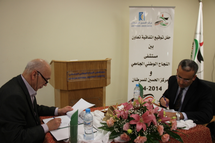 وقع مستشفى النجاح الوطني الجامعي اتفاقية تعاون مشتركة مع مركز الحسين الطبي للسرطان, حيث وقع الاتفاقية ممثلا عن مركز الحسين الطبي الدكتور حكمت عبد الرازق المدير الطبي وممثلا عن مستشفى النجاح الوطني الجامعي الدكتور هاني النابلسي عضو مجلس امناء المستشفى.