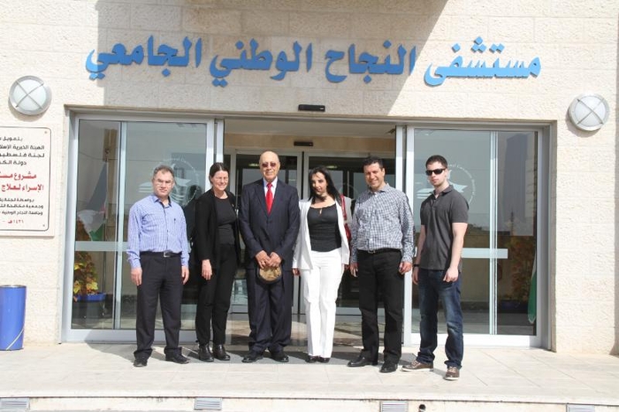 وبعد ذلك قام عميد الكلية والرئيس التنفيذي للمستشفى البروفيسور سليم الحاج يحيى باصطحاب الوفد لزيارة المستشفى النجاح الوطني الجامعي والتقت بعدد من الاطباء فيها، وتحدث البروفيسور سليم خلال اجتماعه عن المستشفى وعن الانجازات الحالية والرؤيا المستقبلية وطرق التعاون بين الطرفين خاصة في مجال ابحاث سرطان الثدي والأنواع الاخرى وكيفية تقديم الابحاث للجهات المانحة للحصول على تمويل لهذه الدراسات.