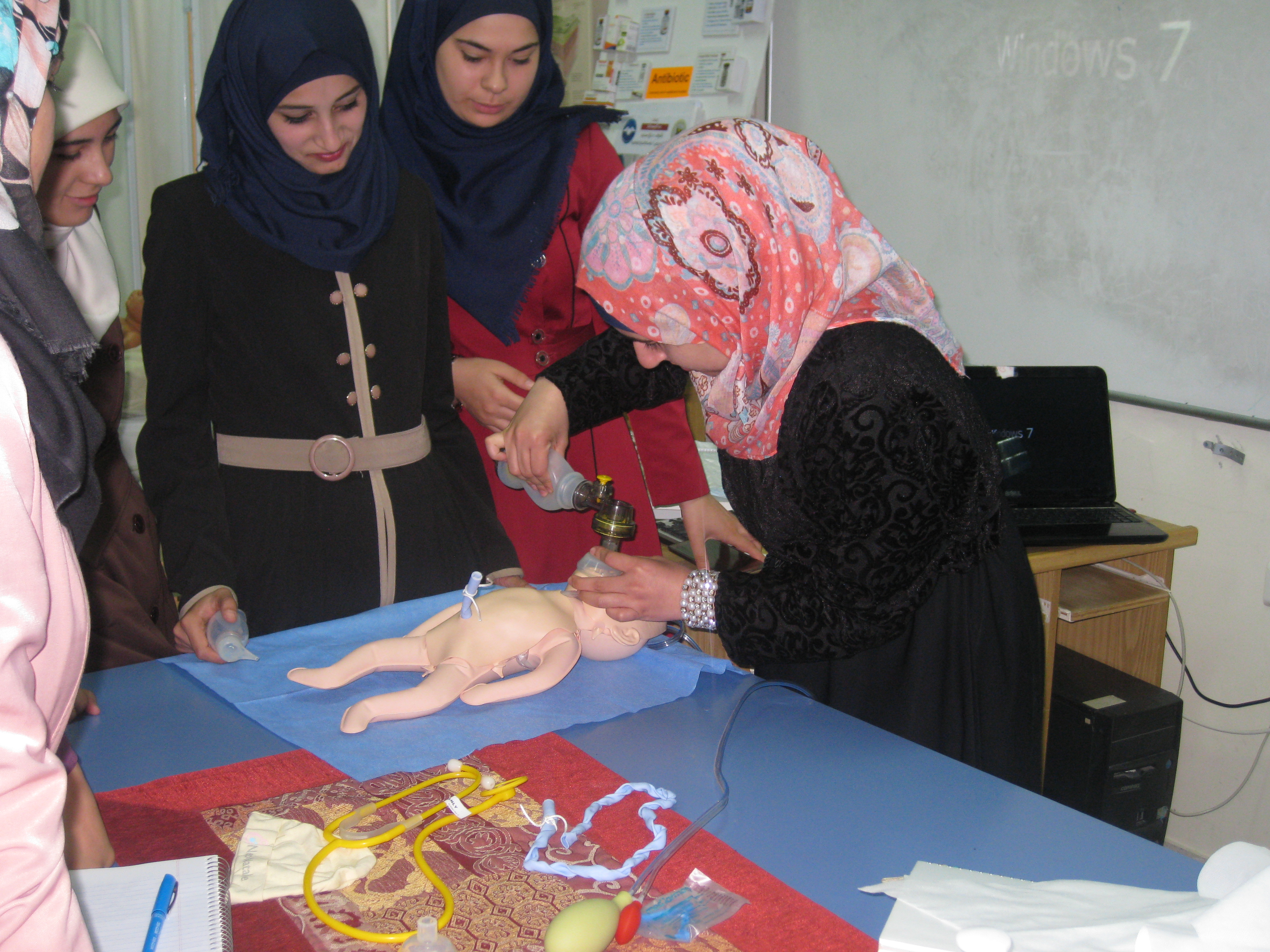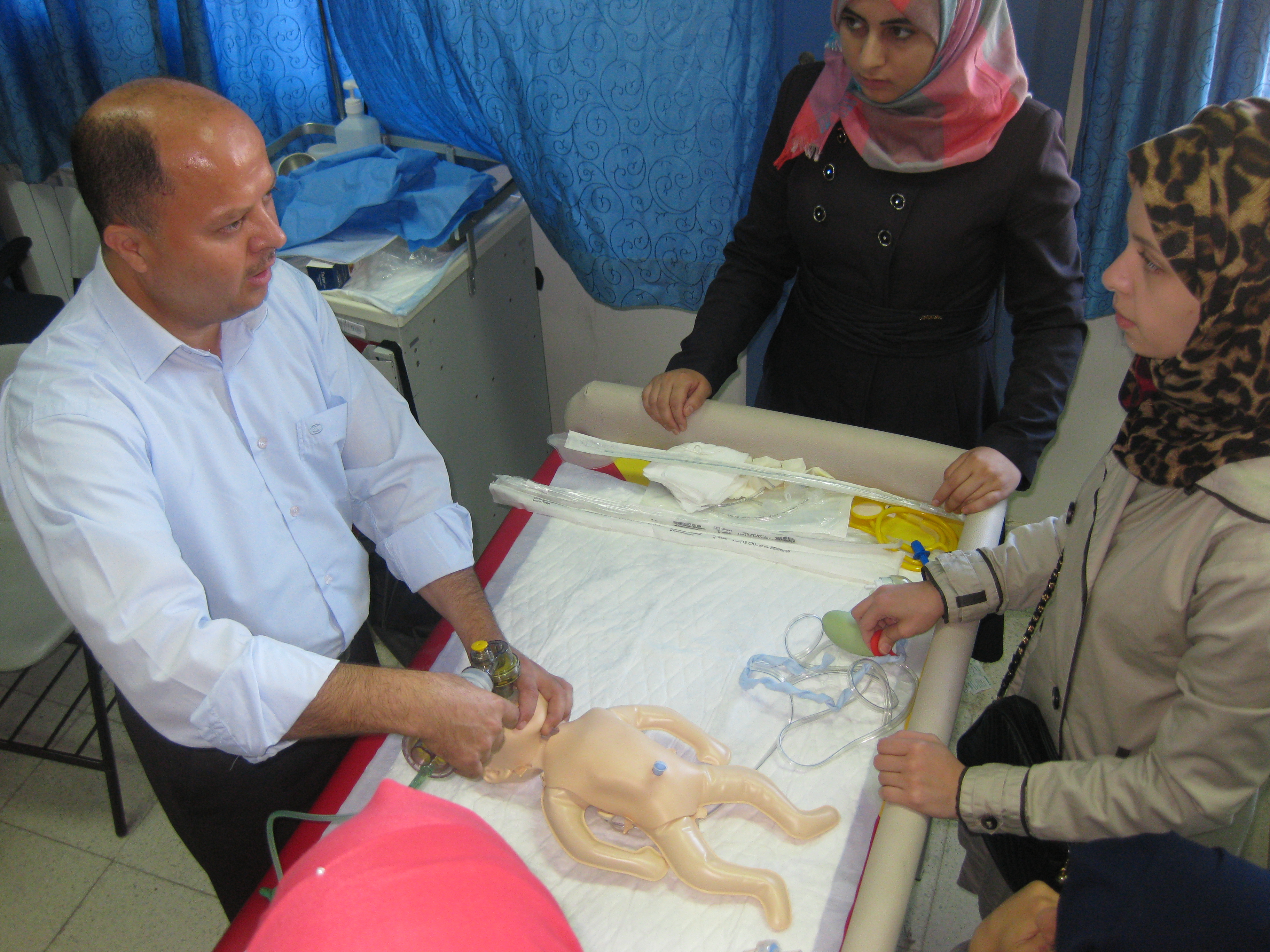 تشجيعا للدورات اللامنهجية فقد عقدت دائرة التمريض والقبالة بإشراف أ.عمر المحمود المتخصـص في تمريض الأطفال و حديثي الولادة دورة الإنعاش المتقـدم لأطفال حديثي الولادة لطالبات القبالـة سـنة ثالثـة بحيث يتم فيه تسليط الضوء على دور القابلـة في العنايـة بالأم والمولود في غرفـة الولادة .