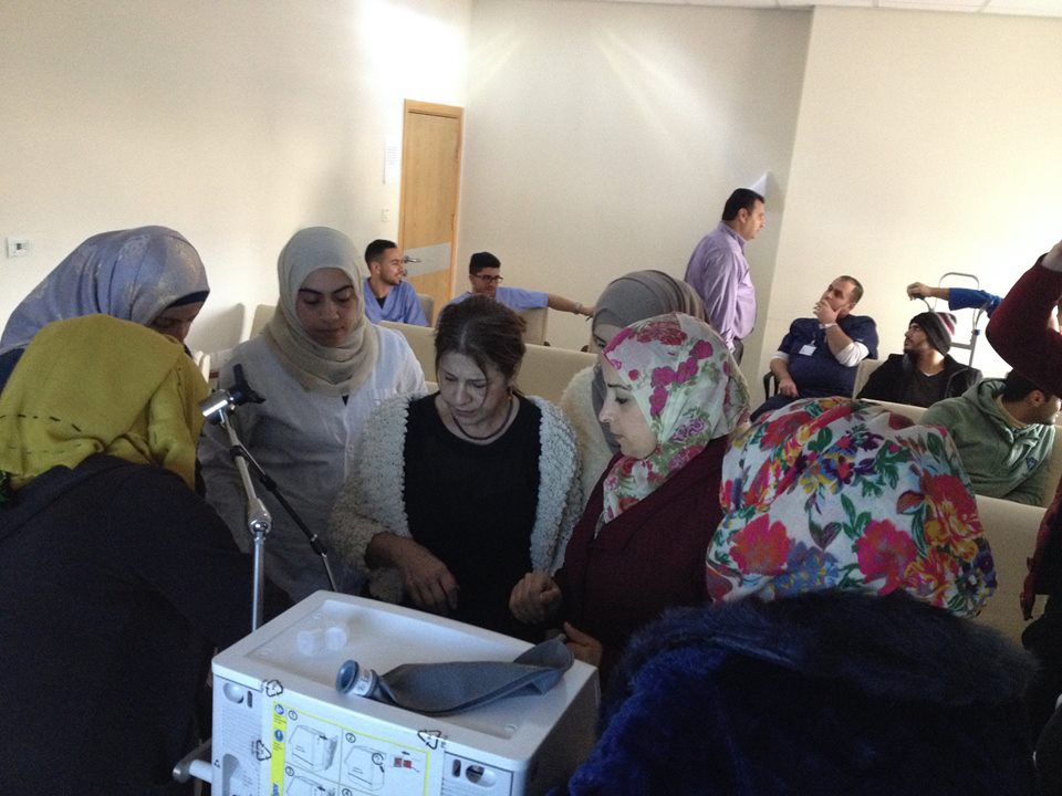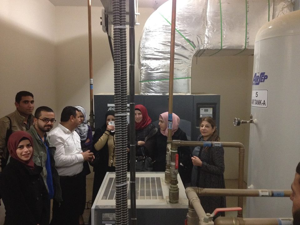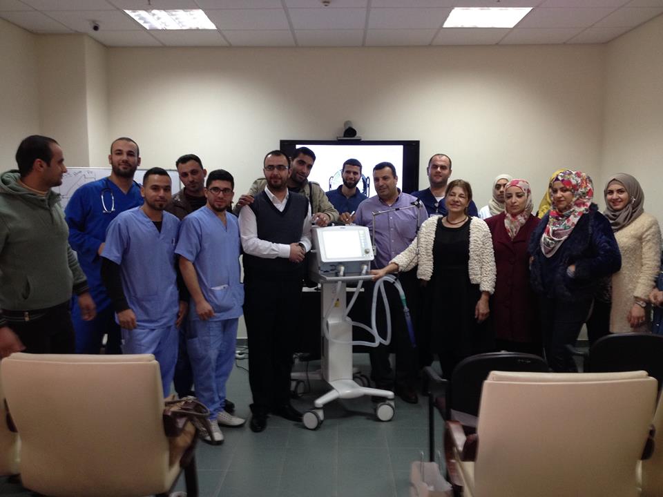 وقد قام الأستاذ محمود صندوقه ممثل شركة أركوميد بالتدريب على بعض الأجهزه وخاصه جهاز التنفس الصناعي وقد تم تديب الطلبة من قبل أ.فيصل اشتيوي ود.عائدة القيسي على بعض الاجهزة مثل أجهزة التنفس واجهزه التخدير وجهاز فحص الغازات في الدم وأجهزة السوائل الوريدية والتغذية واستخدامات الاكسجين والغازات وجهاز رجفات القلب وأجهزة فحص القلب.