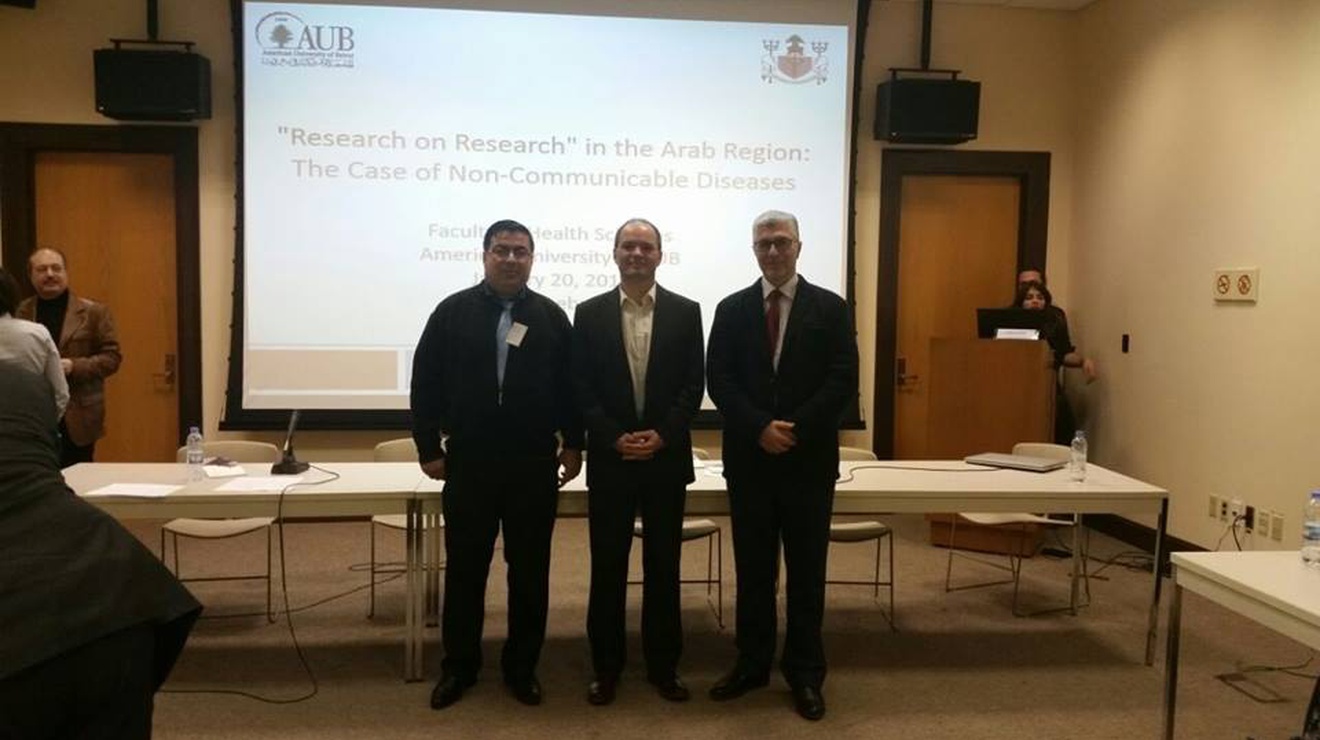 شاركت جامعة النجاح الوطنية ممثلةً بالباحثين الأستاذ الدكتور وليد صويلح والدكتور سائد زيود يوم الجمعة الموافق 21/1/2017، في ورشة البحث العلمي حول الأمراض المزمنة في الجامعة الأميركية في بيروت، والتي عُقدت تحت شعار "تقييم البحث في مجال الأمراض المزمنة في الوطن العربي" بدعم من مركز بحوث التنمية الدولية الكندي.
