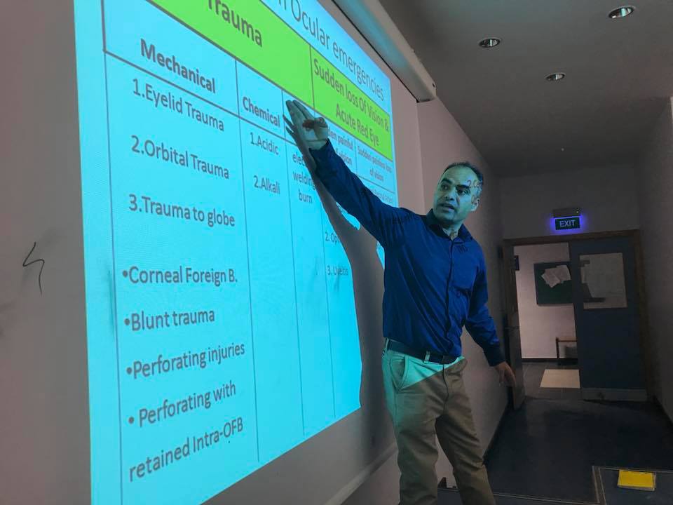 استضاف قسم البصريات في كلية الطب وعلوم الصحة , السيد نصر الله خليلية مدير وحدة ( Infection Control ) في مشفى سانت جون للعيون في القدس حيث تحدث للطلبة عن أنواع المخاطر والإصابات الحرجة التي قد تصيب العيون مثل الخدوش, ودخول الأجسام إلى العين, وتعرض العيون للمواد الكيميائية بالإضافة إلى بعض التهابات العين التي تحتاج إلى الرعاية الطبية السريعة.
