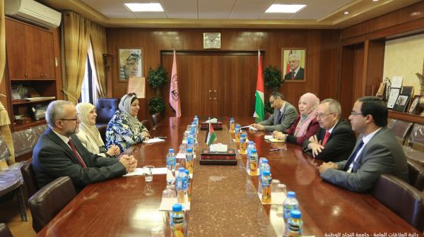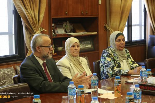 ورحب الأستاذ الدكتور النتشة بالوفد الضيف، مشدداً على علاقة التعاون التي تربط جامعة النجاح بمختلف مؤسسات المجتمع المحلي وخصوصاً المؤسسات التي تعنى بفئات ذوي الإحتياجات الخاصة، مثنياً على الجهود التي تقوم بها جمعية أصدقاء مرضى الثلاسيميا في دعم المرضى وذويهم، مشيراً في الوقت ذاته إلى أن الجامعة تسعى لتقديم الدعم الممكن لفئات ذوي الاحتياجات الخاصة من خلال كلياتها ومراكزها ومساقاتها المطروحة والتي تُعنى بالمجتمع.