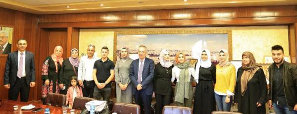 استقبل الأستاذ الدكتور ماهر النتشة، القائم بأعمال رئيس الجامعة في مكتبه يوم الأحد الموافق 11/11/2018 عدد من خريجي تخصص التمريض من كلية الطب وعلوم الصحة في الجامعة والناجحين من المرة الأولى في امتحان المزاولة المهنة من الداخل المحتل.