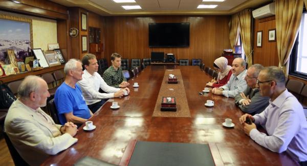 وحضر اللقاء الدكتور إياد العلي، مدير وحدة البحث العلمي ف كلية الطب وعلوم الصحة، والدكتور خليل العيسى، عميد كلية الطب وعلوم الصحة، والأستاذة شذى جرارعة من دائرة العلاقات العامة في الجامعة.