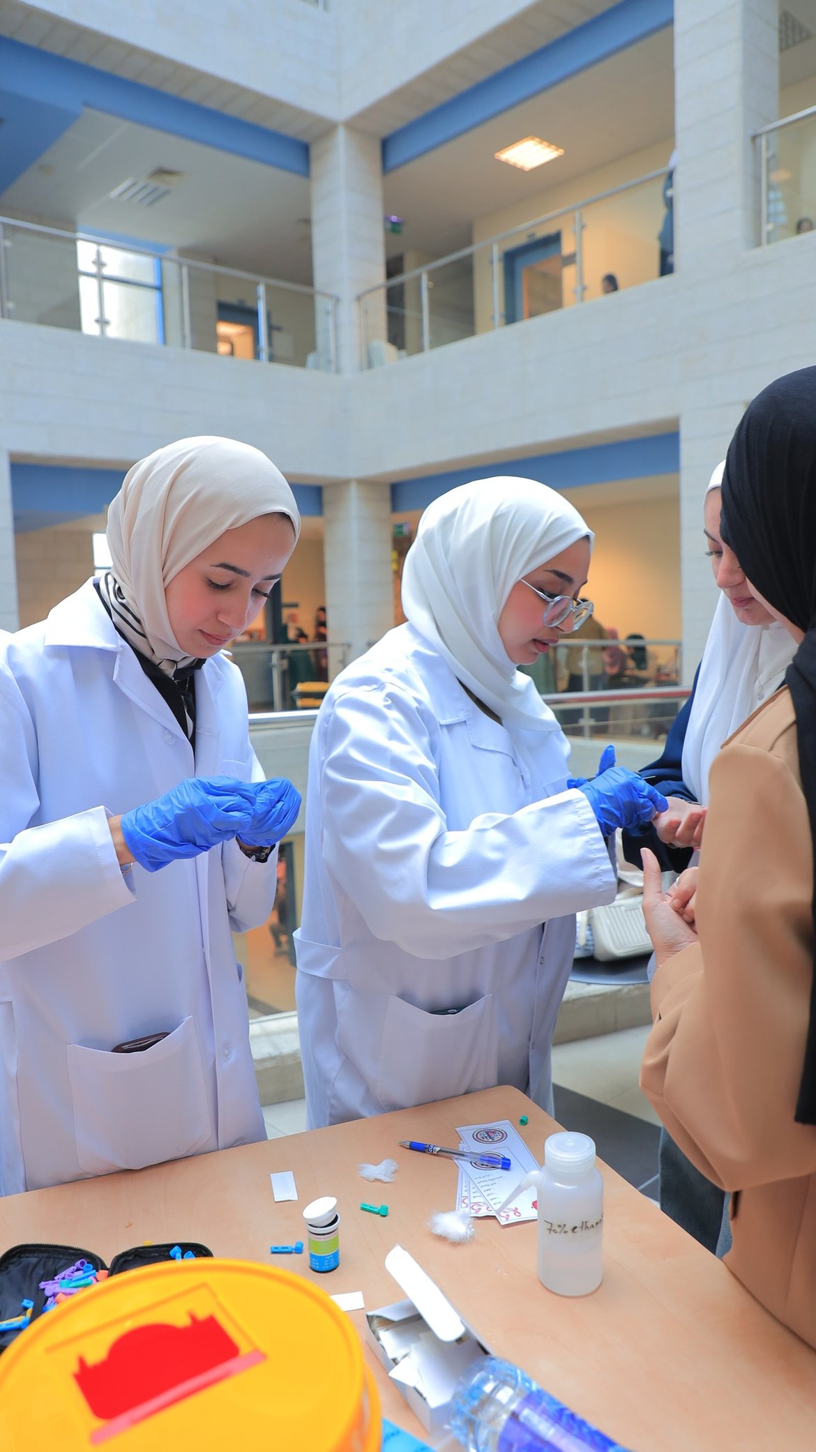 تحت إشراف وتعاون عمادة شؤون الطلبة و قسم العلوم الطبية المخبرية في كلية الطب البشري والعلوم الطبية المساندة، نظمت جمعية الطب المخبري يوماً طبياً مجانياً توعوياً، يهدف إلى تعزيز الوعي الصحي لدى المجتمع الجامعي، وتقديم المعلومات الدقيقة حول الفحوصات الطبية الأساسية، وتشجيع الوقاية المبكرة للكشف عن الأمراض وأهمها التوعية بسرطان الثدي في شهر اكتوبر الوردي، بما يرسخ ثقافة الصحة والوقاية في المجتمع وتضمن اليوم الطبي عمل فحوصات متنوعة مثل ضغط الدم، وفحص فصيلة الدم، ومستوى السكر في الدم وفحوصات أخرى.